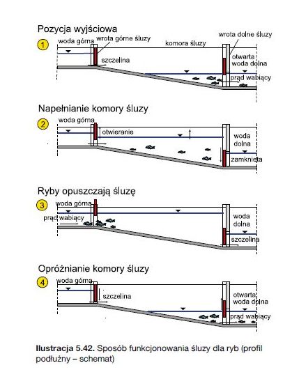 - zła – mniej niż 70% ryb pokonuje przeszkodę, a opóźnienie jest większe niż kilka dni, trwa nawet miesiąc.