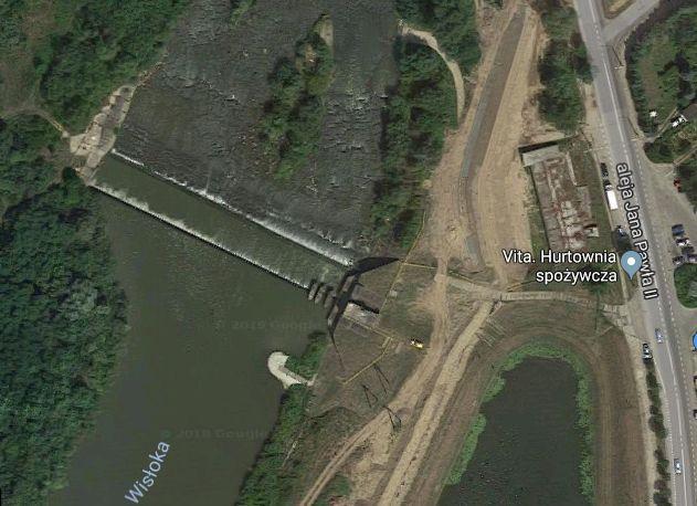 The double weir dams water up to the height of 2,2 m and has the width of 100 m. The upper weir and the plates strengthening bottom above the weir were made from concrete. At the right bank 3 concrete pillars are situated. The second weir, situated below, was made from Larsen steel sheet pile cofferdam. The bottom below was strengthened by gabion baskets and a stone overlay.