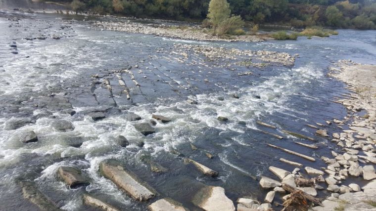 Because of great difference of levels between the upper and lower water at right bank an almost 40 m fish pass consisting of 6 chambers was built. The fish pass stopped working when, because of erosion below the dams, a weir was made from Larsen steel sheet pile cofferdam. This weir eliminated access to fish pass for fish and other aquatic organisms.