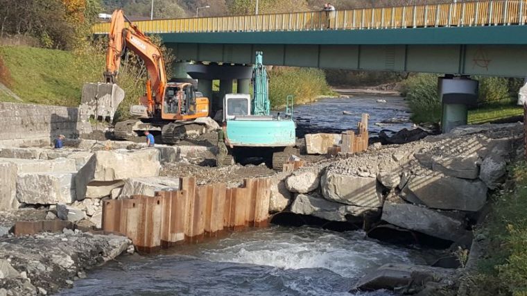 Wires of an inactive rainy sewer will be dismantled and wires of a sanitary sewer will be moved above the ramp and along the river bottom. An existing retaining wall will be also reconstructed.