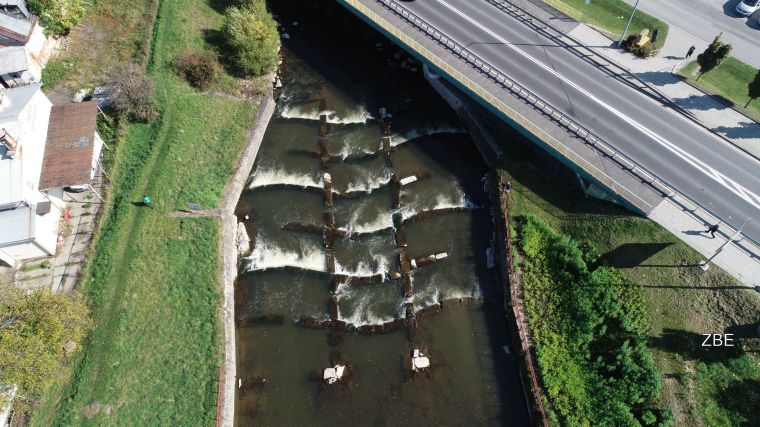 As part of modernization, a liquidation of the existing weir is proposed as well as a building of a stone ramp made with boulders of various dimensions scattered irregularly. Their purpose will be on the one hand a water damming and on the other a decrease of the water flow which will create suitable conditions for a migration of fish and aquatic organisms.
