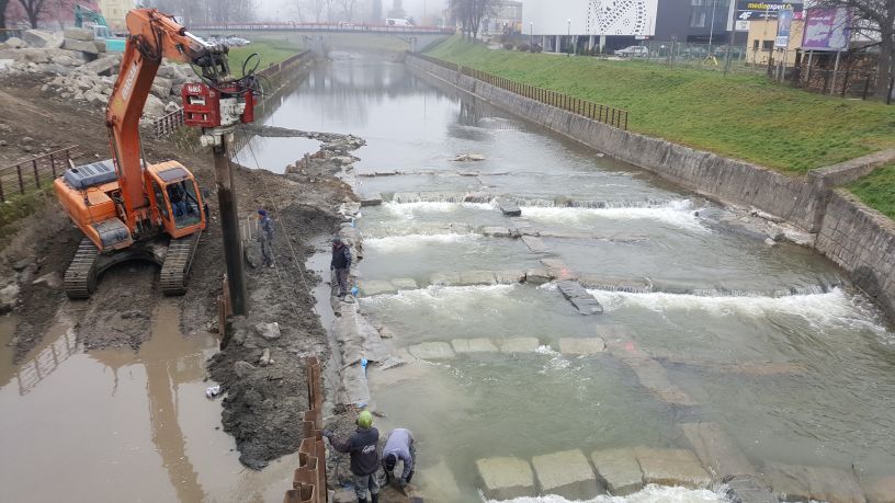 Przewody nieczynnej kanalizacji deszczowej zostaną rozebrane, a przewody kanalizacji sanitarnej przełożone zostaną w inne miejsce – powyżej rampy i poprowadzone w dnie rzeki. Przebudowie ulegnie również istniejący mur oporowy i uzupełnione zostaną wyrwy w brzegu.