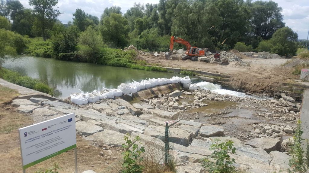 Budowa przepławki dla ryb w formie rampy kamiennej
