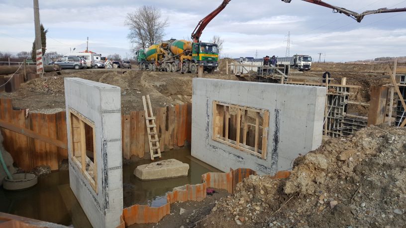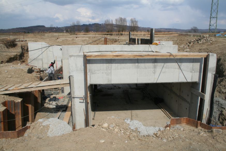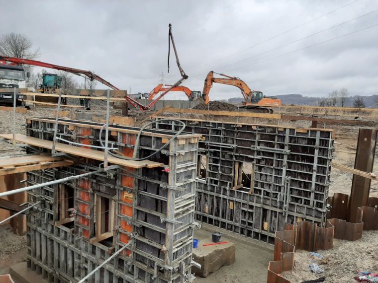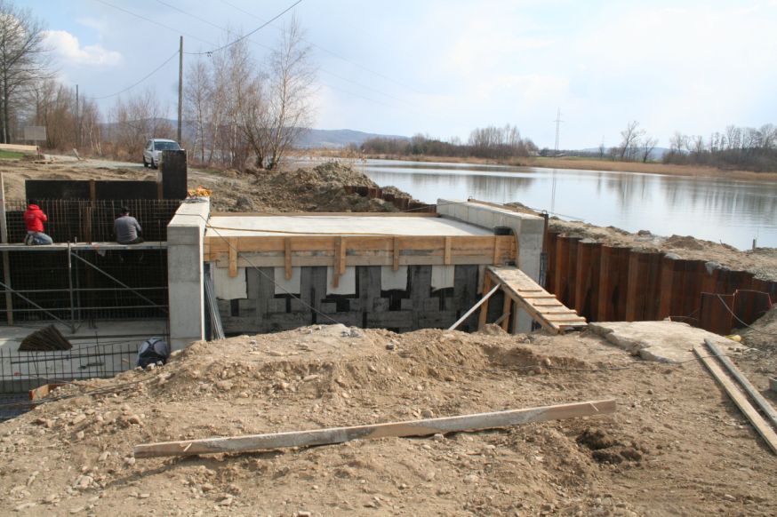Luty – marzec 2020 – budowa mostu nad wlotem do przepławki od strony wody górnej