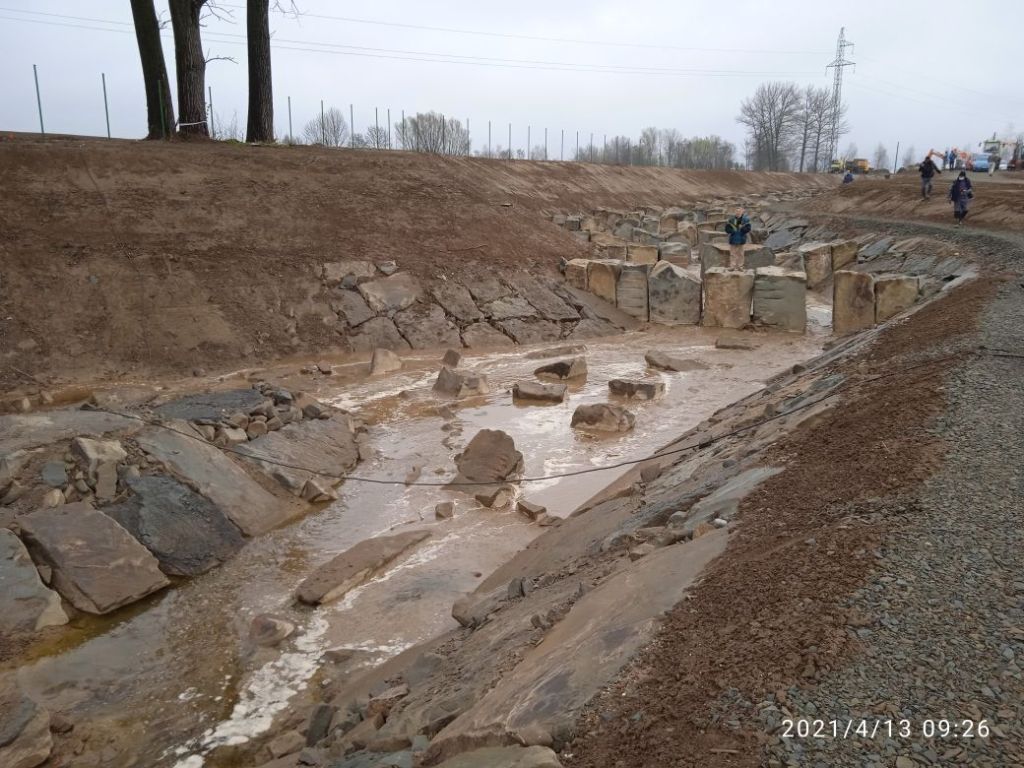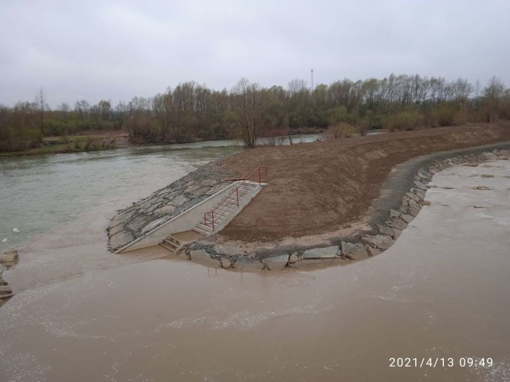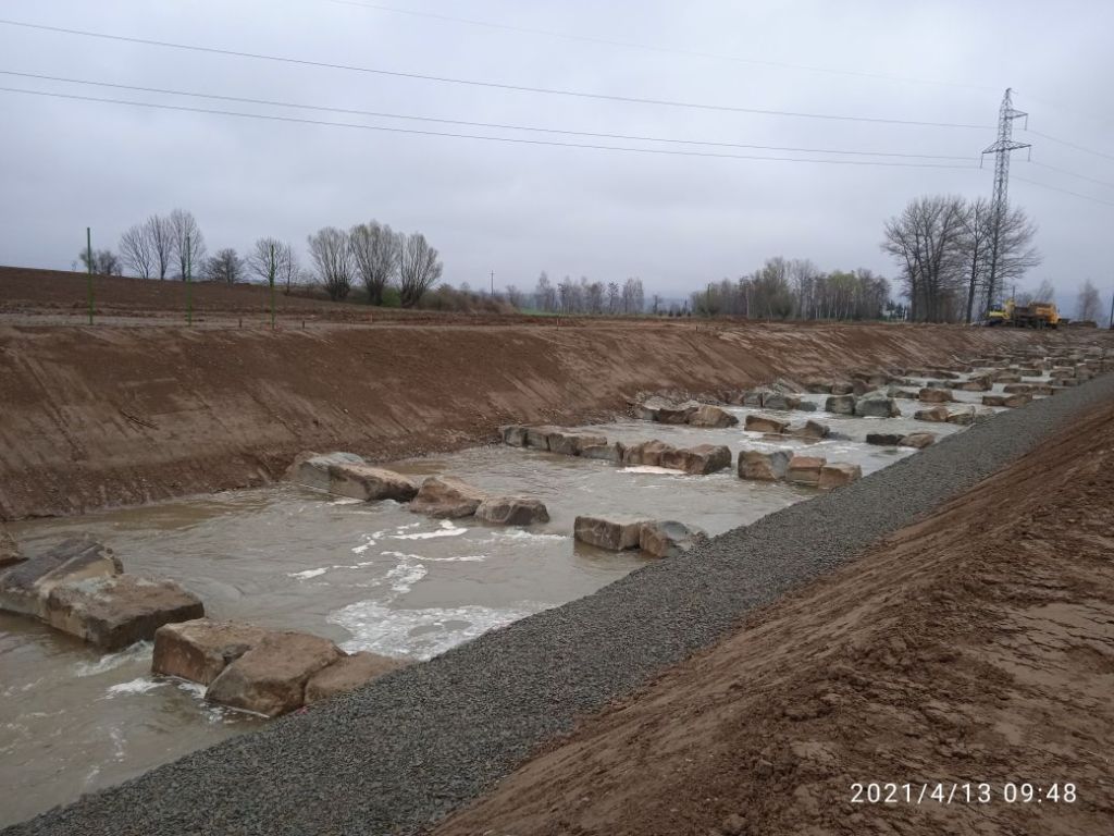Napełnianie przepławki wodą (13 kwietnia 2021)