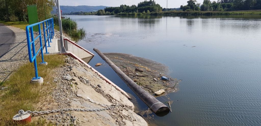 Istniejący jaz, pomimo wyposażenia go w przepławkę (na lewym brzegu) stanowi obecnie przeszkodę nie do przebycia dla ryb. Jest to przepławka o długości 52 m składająca się z 13 komór oddzielonych betonowymi ścianami. Późniejsze wybudowanie na jazie, po przeciwległej stronie niż przepławka, małej elektrowni wodnej spowodowało w tym miejscu koncentrację głównych mas wody i ryb gromadzących się pod wpływem prądu wabiącego po stronie elektrowni, a tym samym bezużyteczność istniejącej przepławki. Poza tym, zarówno jaz, jak i powstały w wyniku piętrzenia wód zbiornik spowodował zatrzymanie ruchu rumowiska wleczonego zaburzając naturalne procesy w korycie rzeki poniżej tych obiektów (nastąpiła silna erozja dna poniżej wejścia do przepławki).