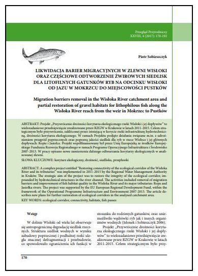 Tytuł: Likwidacja barier migracyjnych w zlewni Wisłoki oraz częściowe odtworzenie żwirowych siedlisk dla litofilnych gatunków ryb na odcinku Wisłoki od jazu w Mokrzcu do miejscowości Pustków